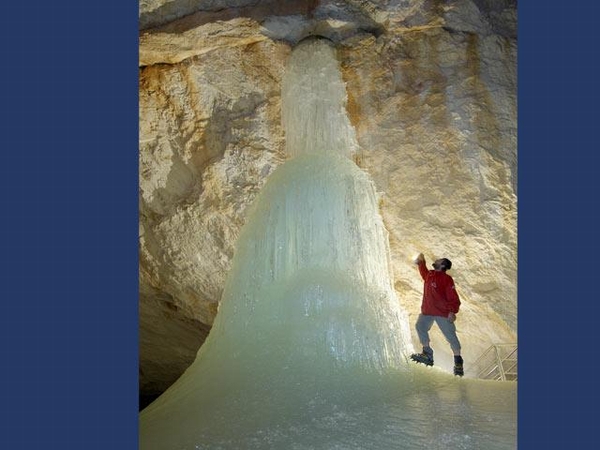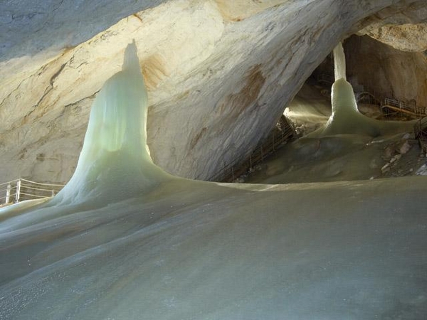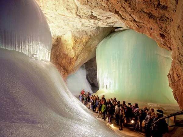 В 40 километрах к югу от Зальцбурга, под маленьким австрийским городком Верфен, находятся самые большие Ледяные Пещеры мира «Eisriesenwelt» — Мир Ледяных Великанов. 42-километровая система известняково-ледяных переходов и помещений, причём эти 42 километра — это только исследованная на данный момент часть! Открыли пещеры всего чуть более ста лет назад, подвели канатную дорогу — около пятидесяти лет назад, а туристов пускают и вовсе только последние пару десятилетий. При этом посетителям разрешается осмотреть только первый километр пещер от входа и только в составе организованной группы с местным гидом-проводником. Впрочем, и этого вполне достаточно для того, чтобы на выходе сказать: «Ух ты!!!» — и осознать, что жизнь удалась!