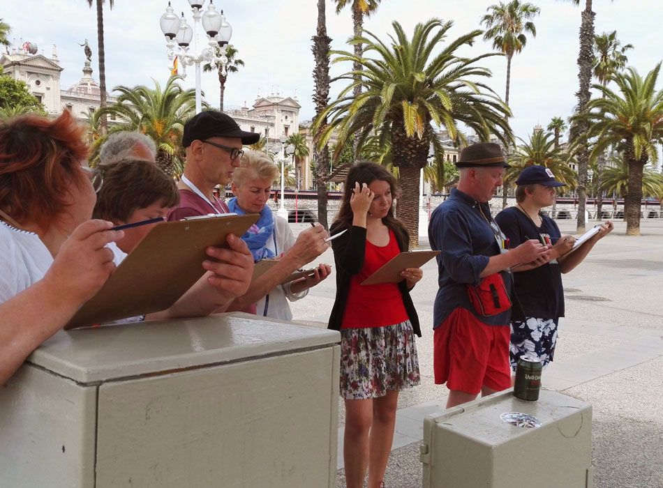 Уникальное переживание и ценный опыт - увидеть очаровательную Барселону взглядом художника! И, помимо опыта, гости увезут прекрасные рисунки, выполненные собственными руками. В ходе мастер-классов мы рисуем архитектурные достопримечательности, такие как собор Саграда Фамилия, кафедральный собор Барселоны, Триумфальная арка, памятник Христофору Колумбу, церковь Сан Пау-дель-Камп, каса-де-лес Пунчес, Понт дель Бисбе, Эдефиси-де-ла-Каиша де Пенсион, пласа де-Рамон Беренгер Эль Гран и другие. Большинство моих учеников имеют нулевой или близкий к нулю опыт рисования, но все они создают прекрасные рисунки, начиная с первого урока. Секрет заключается в пошаговых инструкциях, живой демонстрации и некоторых трюках и подсказках, объясняемых в процессе рисования. Мы будем работать графитными карандашами или карандашами Контэ или цветными карандашами. Все они являются чистыми в использовании, стираемыми и портативными. Это делает их отличным художественным материалом для уличных зарисовок.