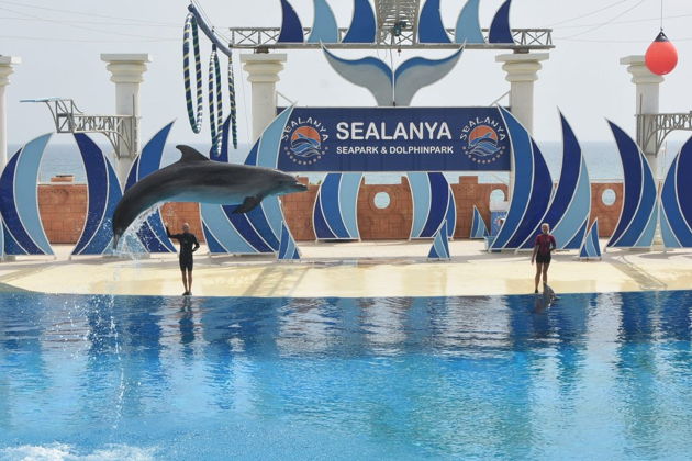 Дельфинарий находится недалеко от популярного турецкого курорта Алания. Расстояние от Алании до дельфинария в среднем займет не более 20 минут, и это стоит того, чтобы во время путешествия насладиться замечательным шоу, которое пользуется бешеной популярностью. Это возможность посмотреть на представление, в котором принимают участие не только дельфины, но и афалины, морские котики и львы. Они будут веселиться в прозрачной воде, прыгать через обруч и играть. Морские обитатели в рамках шоу танцуют и, только представьте, поют! Программа тура (с 8:30 до 12:00 или с 13:30 до 17:00): Сбор туристов из отелей Прибытие в дельфинарий Шоу 50 минут Возвращение в отели